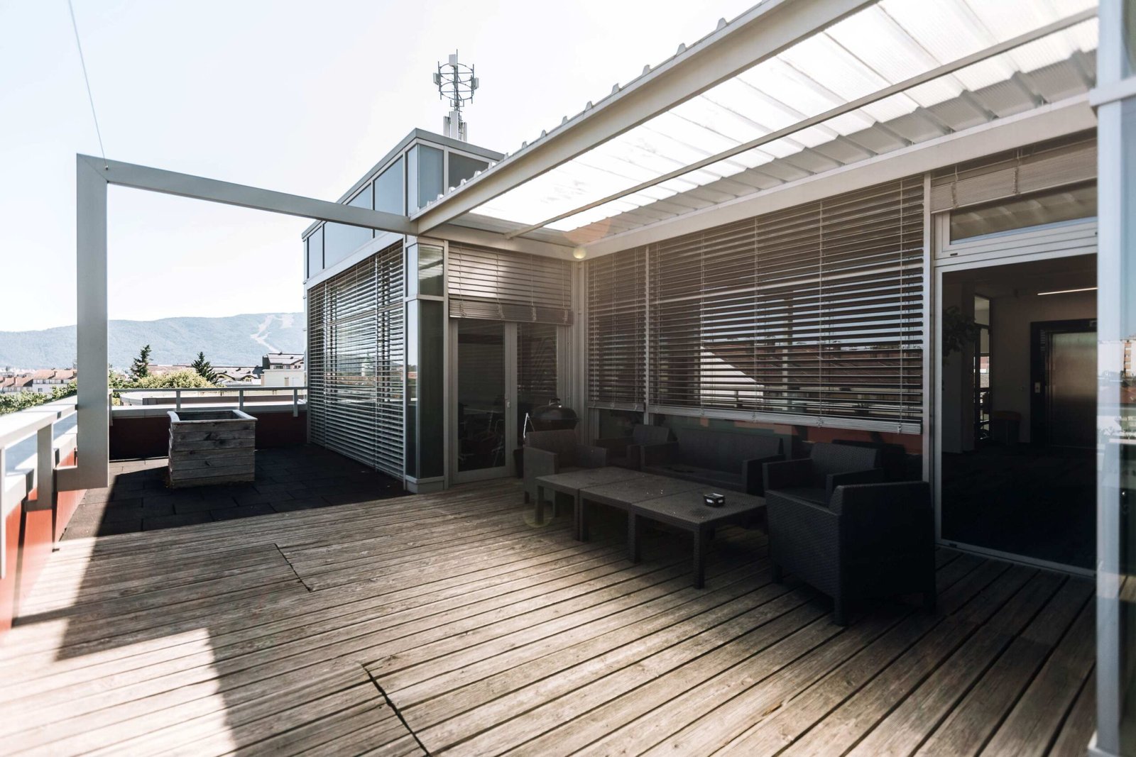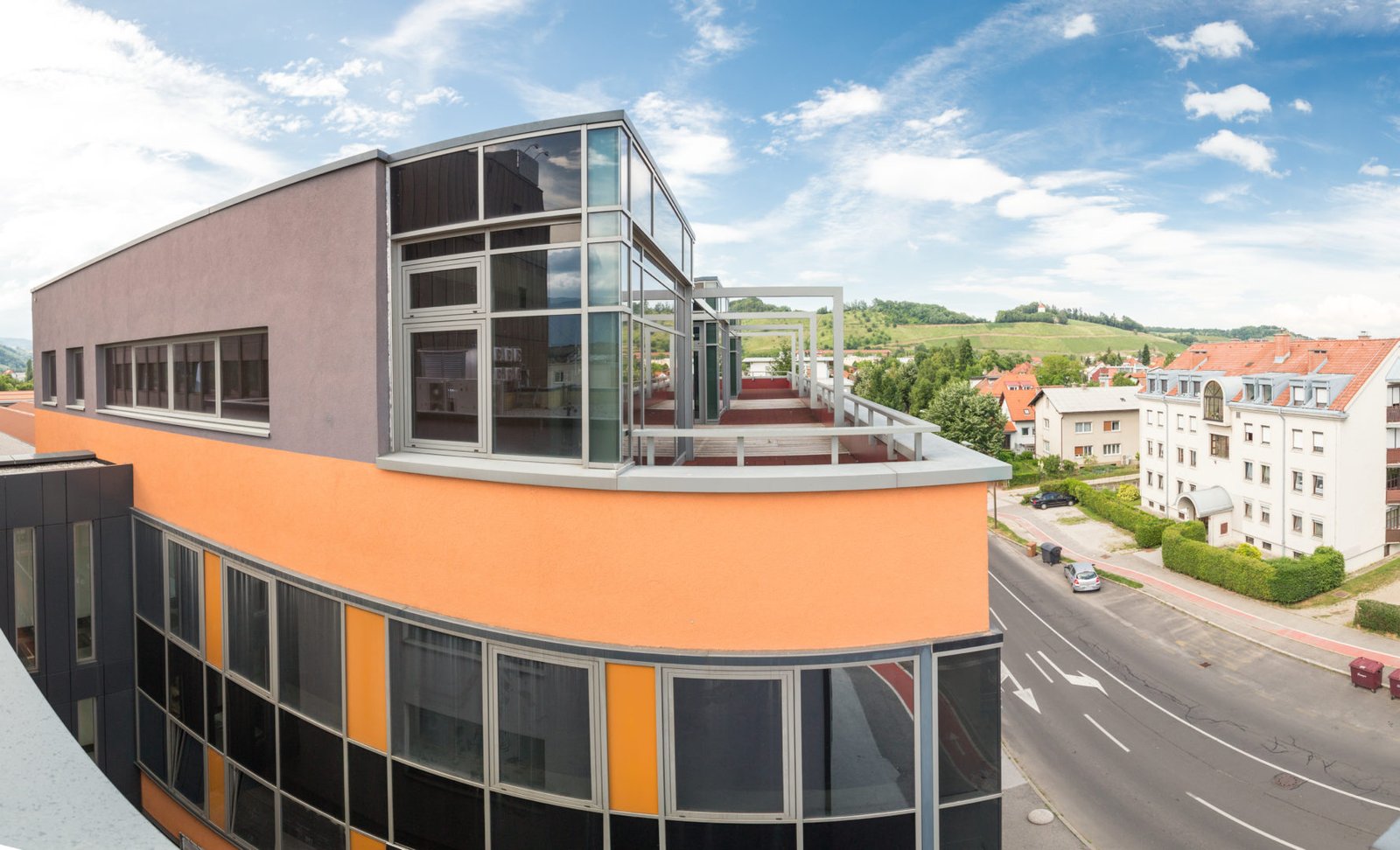 Na vrhu poslovne zgradbe (mansarda), se nahajajo luksuzne pisarne s pripadajočo teraso in panoramskim razgledom.