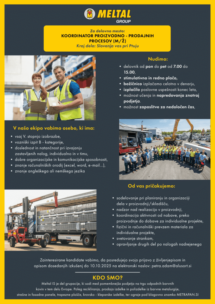 opisom dosedanjih izkušenj do 10.10.2025 na elektronski naslov: petra.adam@alusort.si
